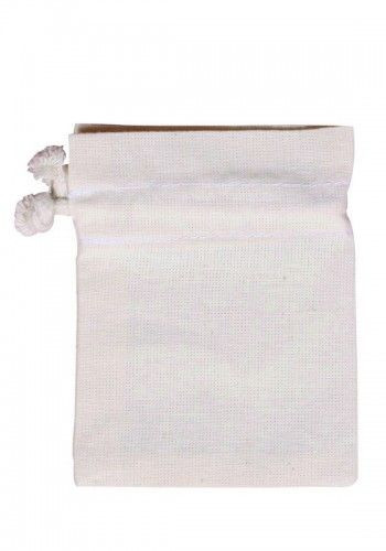 100 % pamutvászonból készült díszíthető textil batyuka, zsinórral összehúzható.