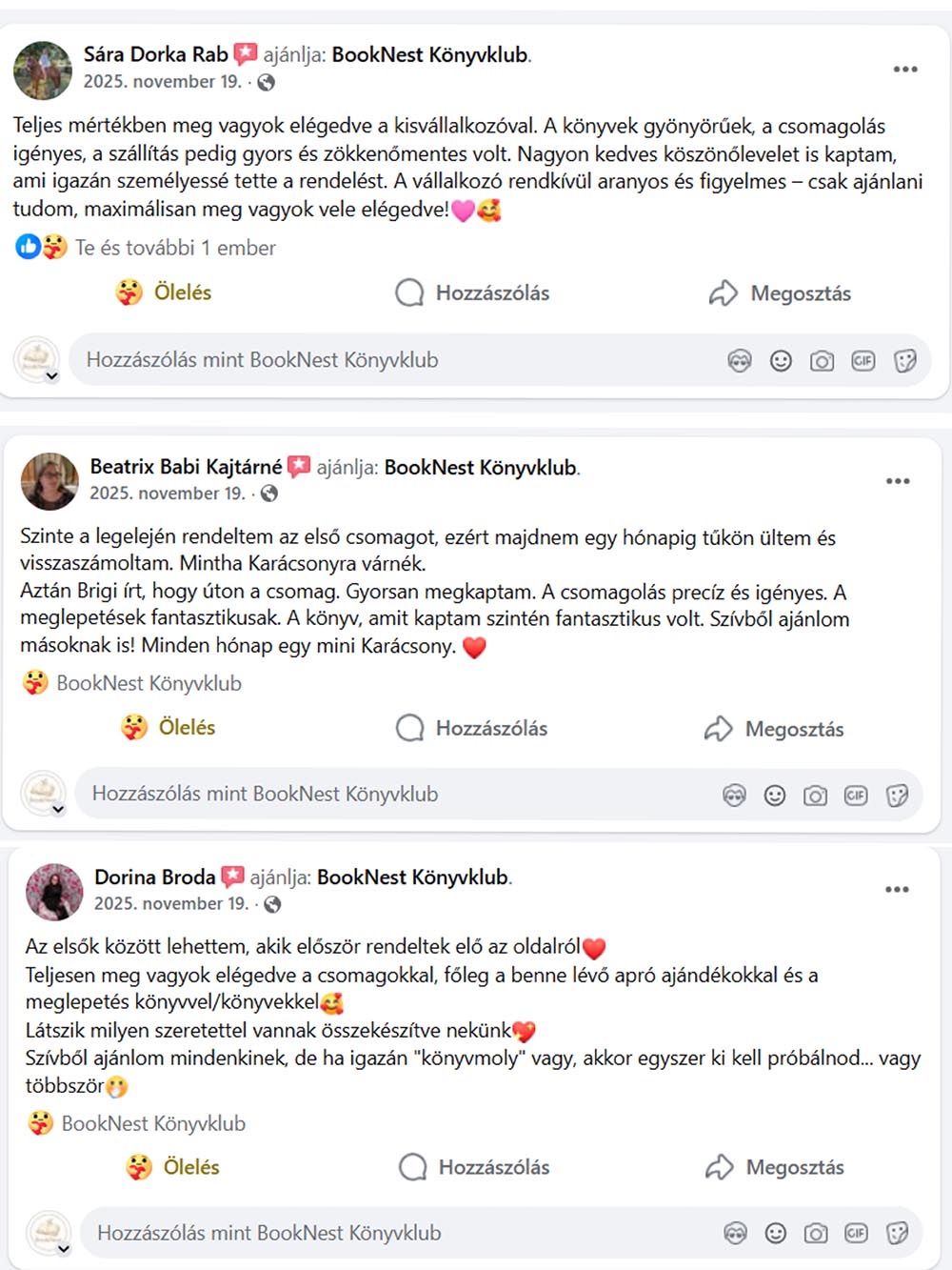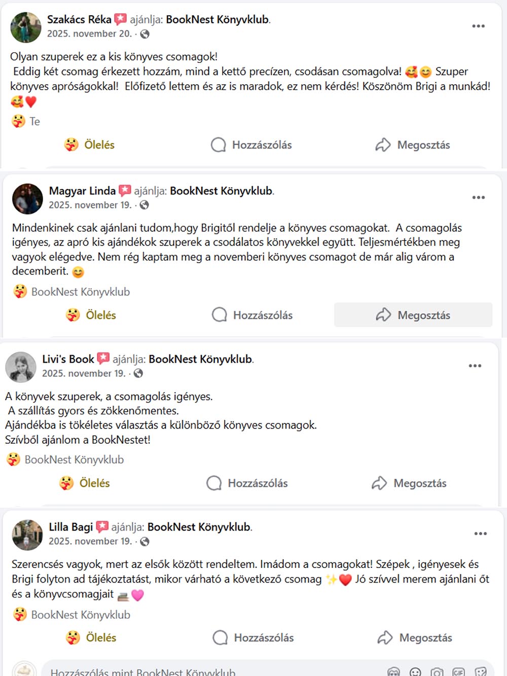 „Minden csomagot szeretettel és gondos odafigyeléssel készítek össze, hogy a BookNestnél ne csak könyveket találj, hanem egy közösséget, egy családot.”