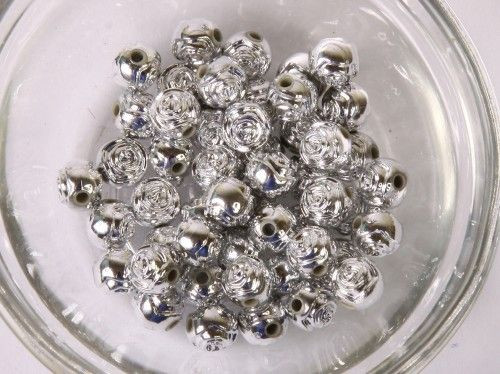 Ezüst metál akril gyöngy, rózsa 6mm, 50db./cs.