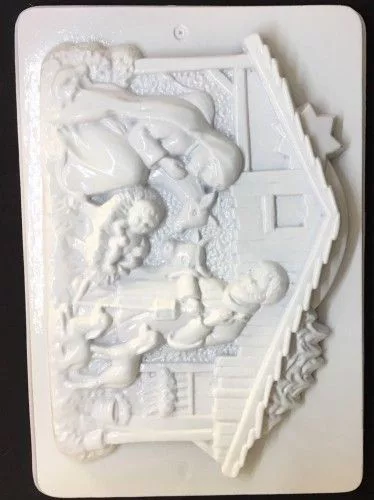 Fehér, műanyag gipszöntő forma, melyből Betlehem forma önthető ki.