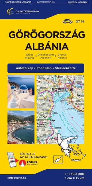 Görögország és Albánia 1:300 000 méretarányú autótérképe. Autózáshoz, útvonaltervezéshez nélkülözhetetlen, valamennyi fontos információt tartalmazza. Nem csak az utak minőségérol és az egyes útszakaszok hosszáról tájékoztat, hanem idegenforgalmi nevezetességek, nemzeti parkok, kempingek, gyógyfürdők, vasútvonalak is feltüntetésre kerülnek. A részletgazdag térképi ábrázolás mellett a hátoldalon a települések keresését segítő névmutató található.