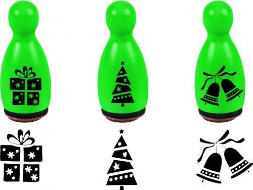 Pecsételő figurák, melyekkel 3 különféle 12 mm-es karácsonyi ábrát pecsételhetünk.