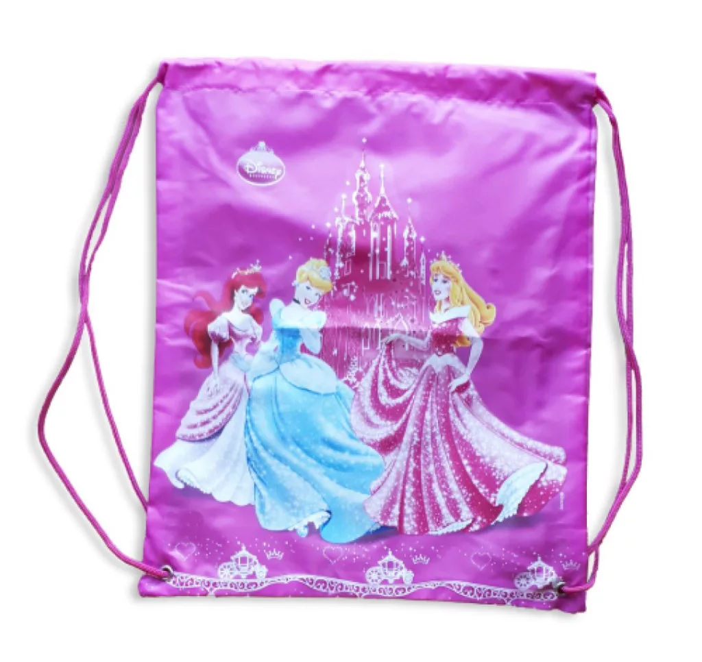 30,5*38 centiméteres, felső részen zsinórral összehúzható rózsaszín tornazsák, Hercegnők mintával