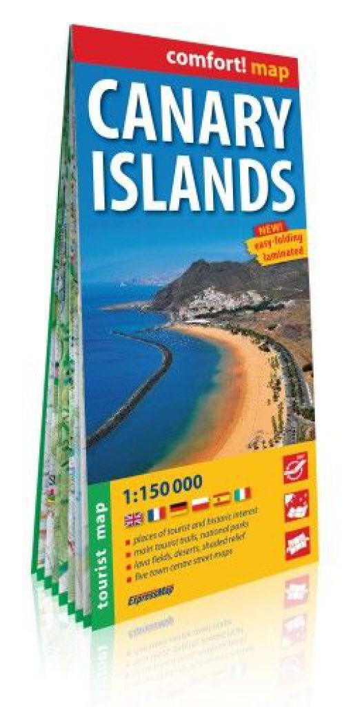 A Kanári szigeteket bemutató kétoldalas, laminált, könnyen kezelhető turisztikai térkép 1:150 000 (1 cm = 150 m) méretarányban. Az Expressmap Comfort térkép sorozat tagjai kétoldalas, laminált, könnyen kezelhető, praktikus, vízálló és strapabíró térképek. A laminált felületnek köszönhetően filctollal írhatóak, a jelölések később eltávolíthatók. A sorozat tagjai között megtalálhatóak a turistatérképek, város- és országtérképek is.