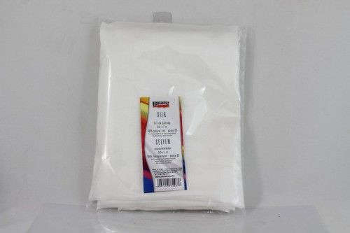 90x100 cm-es szegetlen selyemdarab, tetszés szerinti darabokat vághatunk belőle, melyeket selyemfestékkel díszíthetünk. Száradás után a festést a selyem hátoldalán keresztül, 180 0C fokos vasalóval 3 percig vasaljuk. A festett selyem kímélő mosással tisztítható.